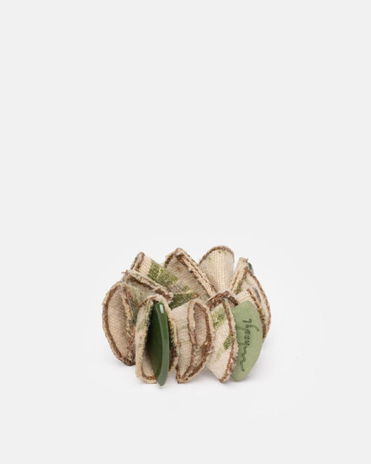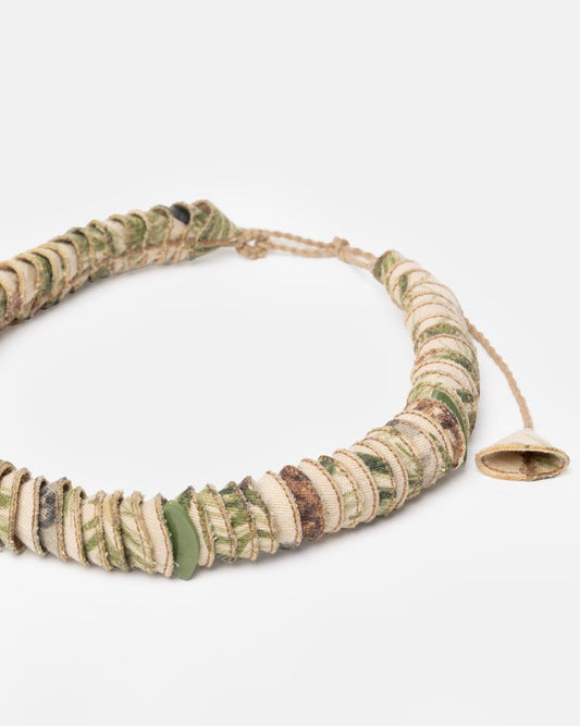 Before the experimental process began, this fabric, mostly white, sourced from surplus factories in northern Portugal, was also dyed with coffee grounds to harmonize all the colors.